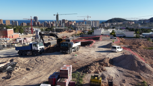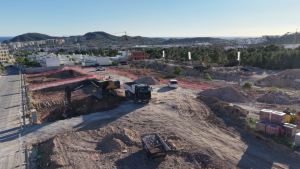Siempre empezamos así cada obra nueva: con el movimiento de tierras transformando el solar y abancalándolo. En esta ocasión con el objetivo de que en cada parcela haya una vivienda que sea un mirador al mar. Todo ello requiere de una gran precisión técnica ya que hay que nivelar las parcelas correctamente.